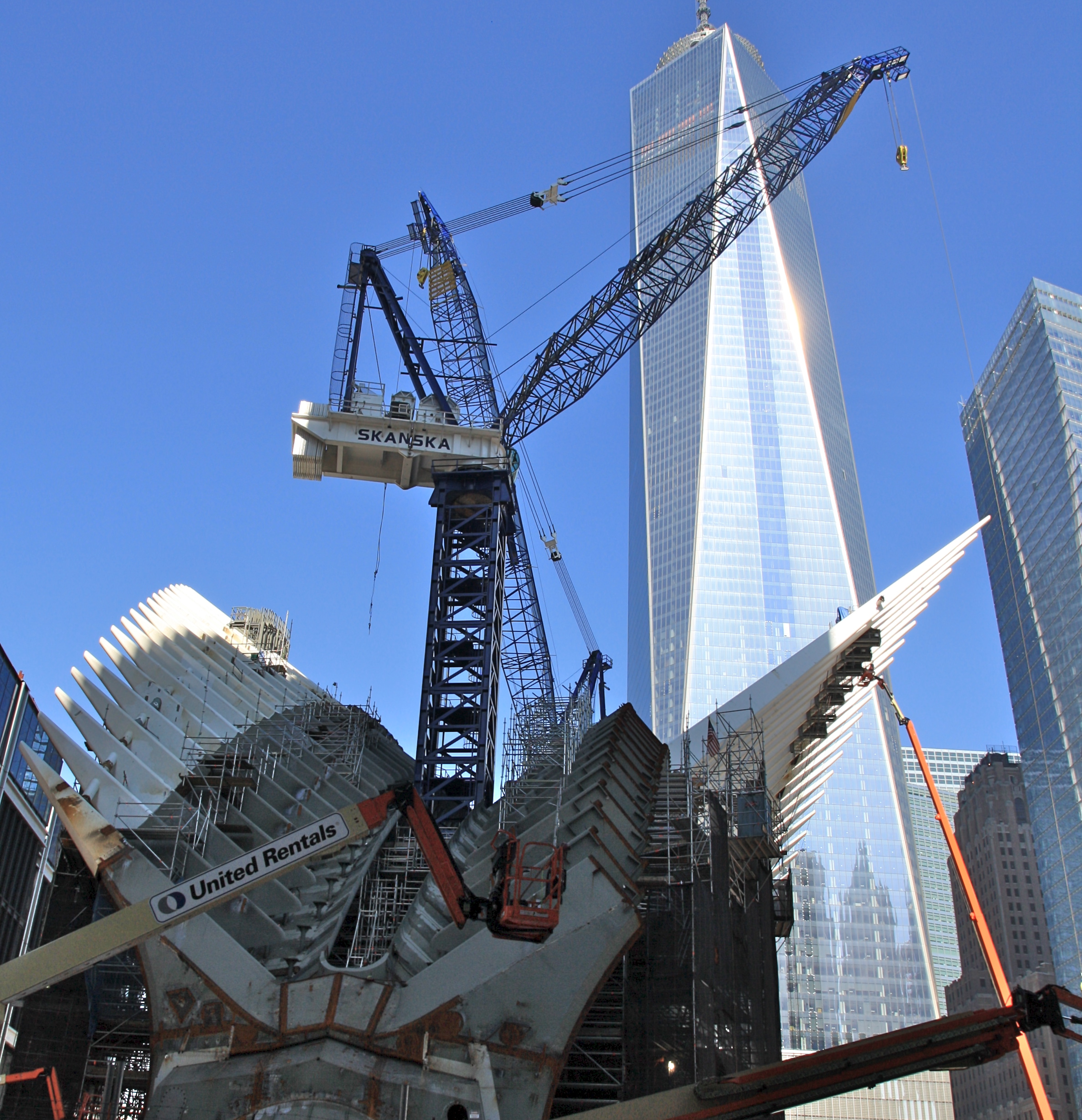 We live in an extraordinarily challenging age, though, and the next Storm Sandy, terror attack, or viral menace may urk around the corner. We can’t anticipate or plan for or prevent everything, but we can learn to respond quickly, leading based on fact. That did not happen here in the New York area, of all places. We should not have forgotten the politicized defiance and the manufactured patriotism that led to both our ill-fated military involvement overseas and the dispiriting stockade that has replaced the World Trade Center. (Hence the photo above, showing One World Trade Center, the erstwhile symbol of American defiance in the face of terrorism. It has become a wan, money-sucking emblem of politics and dysfunction. Fortified against terror threats at vast taxpayer expense, this architecture of fear is surrounded by bollards and vehicle barriers.)